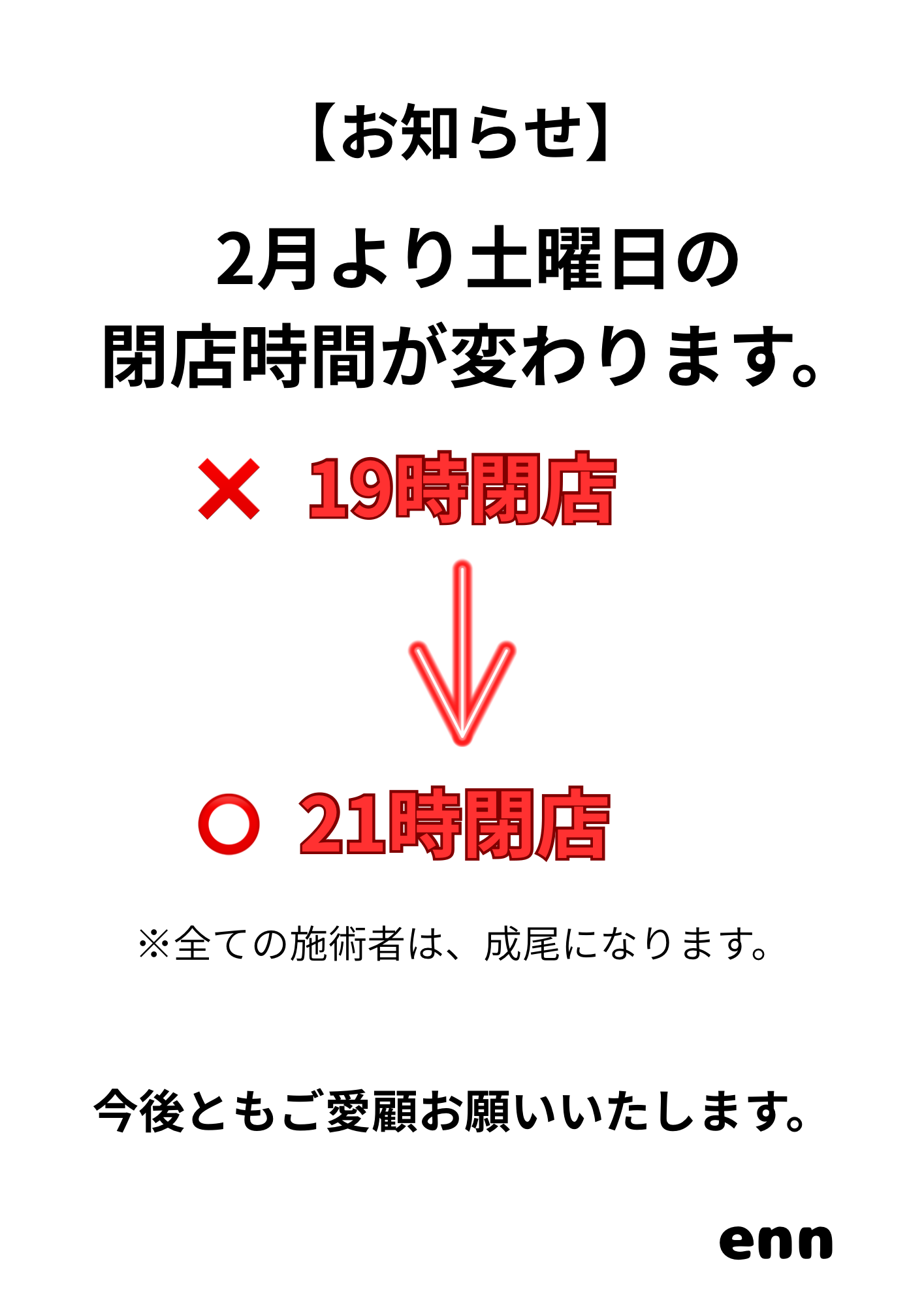 【営業時間のお知らせ】